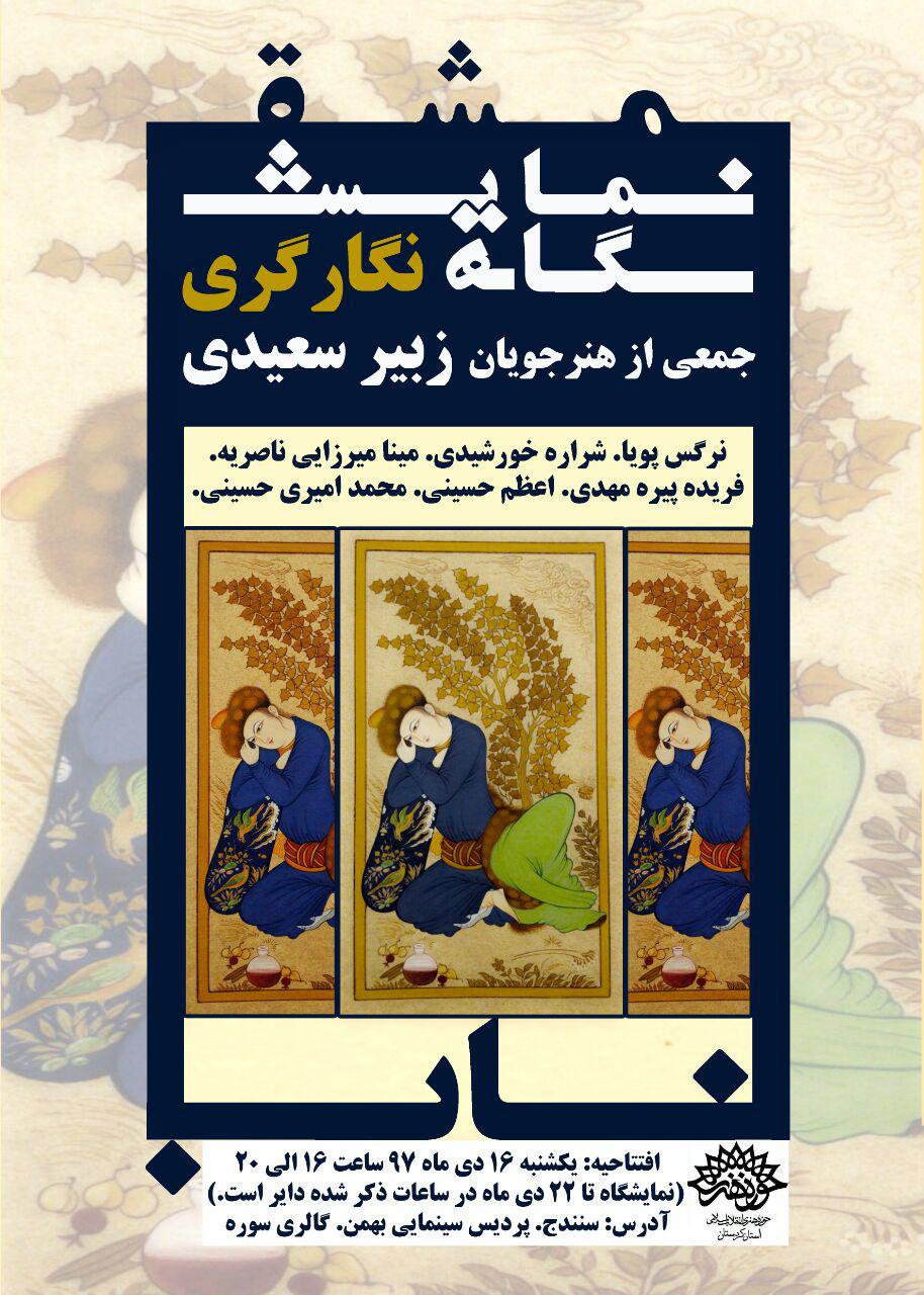 زبیر سعیدی هم یکی از این هنرمندان می باشد که در سال 1383 با هدف تلمذ در محضر استاد اردشیر مجرد تاکستانی به مدت یک سال ، مسیر دهگلان به تهران را می پیماید تا امروز خود به عنوان یک استاد برجسته هنر نگارگری کشور در سنندج با مهیا نمودن شرایط توسط حوزه هنری کردستان میزبان هنرجویانی از نقاط مختلف کشور باشد. برگزاری نمایشگاه" مشق ناب " آثار هنرجویان این استاد جوان و با آتیه هنر نگارگری کشوردر محل گالری سوره پردیس سینمایی بهمن سنندج از 16 لغایت 22 دی ماه 97  فرصتی فراهم نمود تا گفتگویی را با این هنرمند توانمند استان داشته باشیم که حاصل آن گفتاری است که در ذیل می آید .