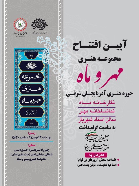 حوزه هنری استان آذربایجان شرقی، به مناسبت چهلمین سال پیروزی انقلاب اسلامی ایران، مجموعه هنری مهر و ماه را افتتاح می کند.