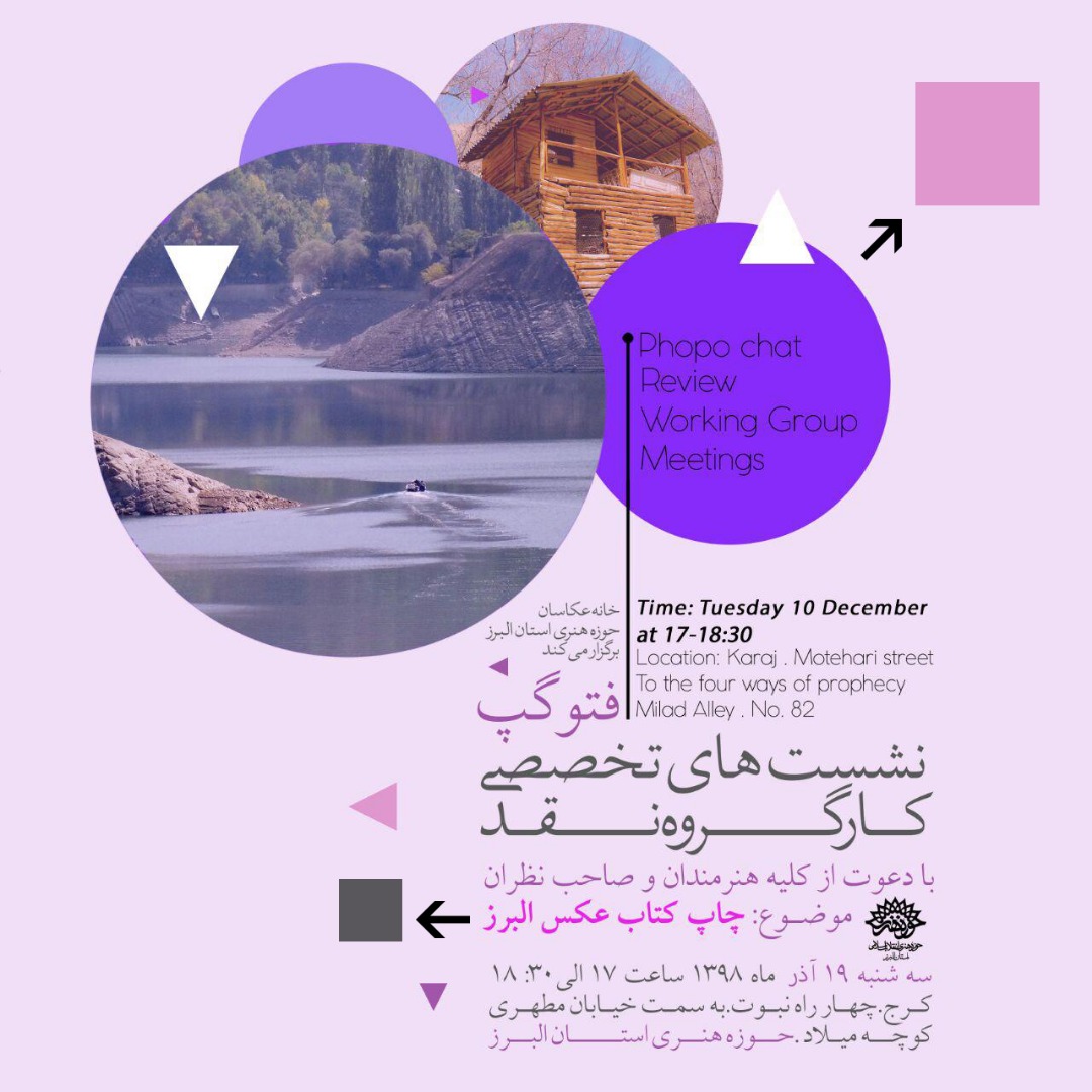 به گزارش روابط عمومی حوزه هنری استان البرز؛ محمد مهرابی، معاون فرهنگی حوزه هنری البرز ضمن اعلام این خبر عنوان کرد: از مجموعه نشستهای تخصصی کارگروه نقد عکس خانه عکاسان حوزه هنری البرز، ویژه برنامه «فتوگپ» با دعوت از کلیه هنرمندان و صاحب نظران، این هفته با موضوع بررسی «چاپ کتاب عکس البرز» در حوزه هنری البرز برگزار میشود.